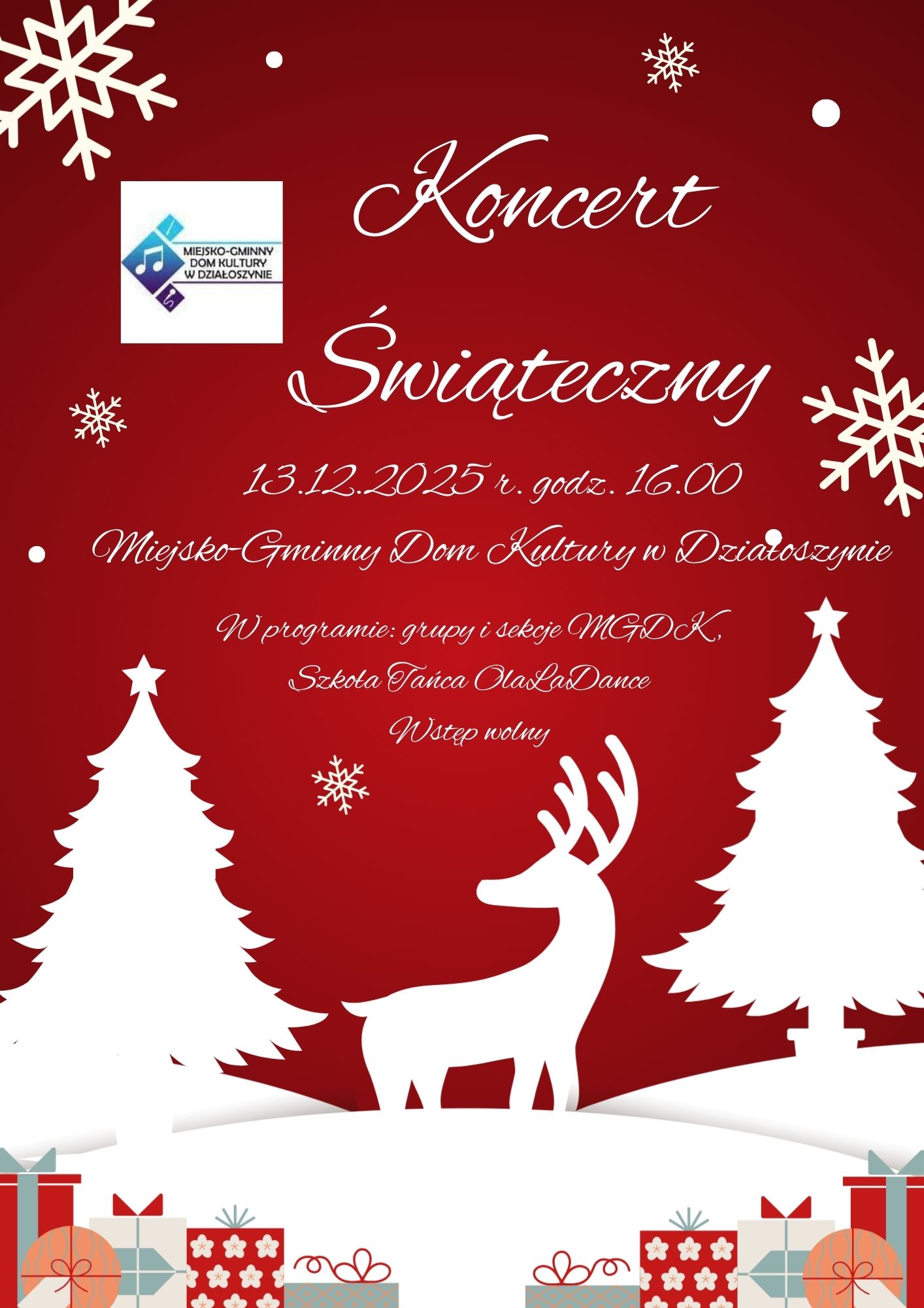 Serdecznie zapraszamy na wyjątkowy Koncert Świąteczny, w wykonaniu grup i sekcji działających w MGDK oraz szkoły tańca OlaLaDance!