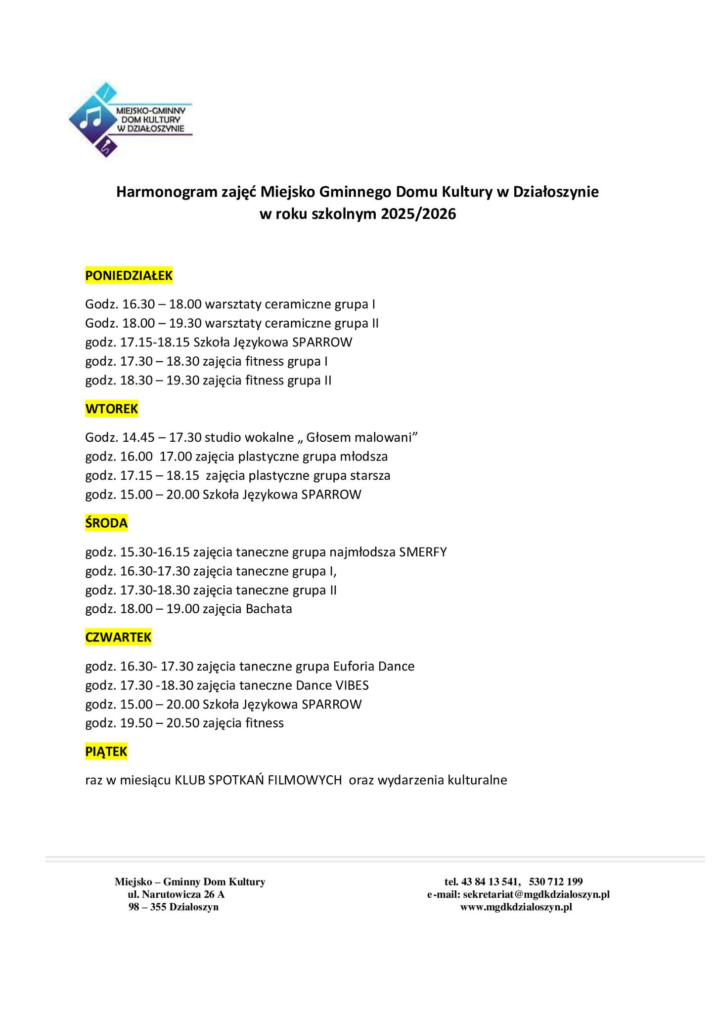 Miejsko – Gminny Dom Kultury w Działoszynie informuje: wpłaty za zajęcia można dokonać